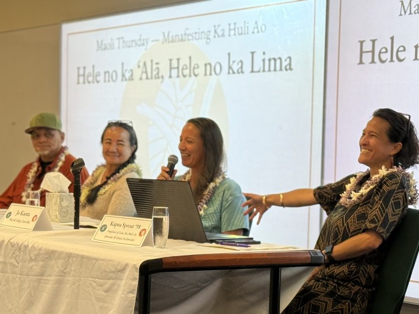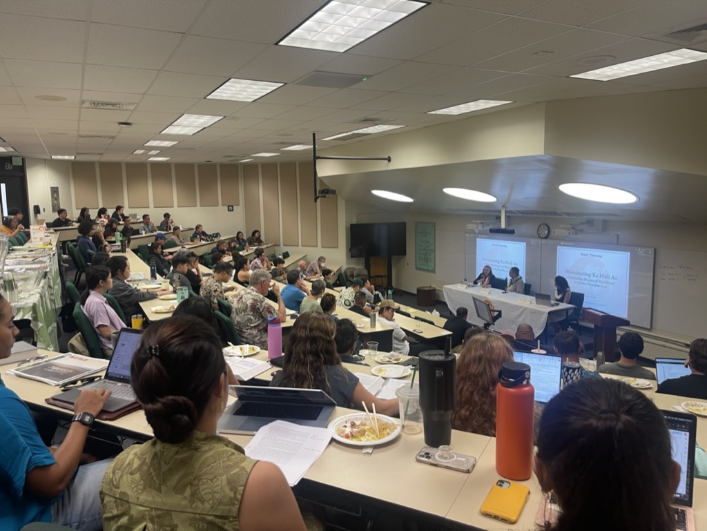 On September 4, more than one hundred people attended the Maoli Thursday panel, Ua Ao Hawaiʻi, featuring Dr. Larry Kimura. The event honored Dr. Kimura’s life’s work and his mele, Ua Ao Hawaiʻi, with its enduring call to uplift ʻŌlelo Hawaiʻi in education and law. In celebration of its 20th anniversary, Ka Huli Ao has centered its work on this call—a powerful reminder that even in our most challenging moments, the path forward is illuminated by Hawaiʻi’s enduring legal foundations, grounded in loina (customs, principles, laws) and ʻike kuʻuna (ancestral knowledge). (Read more)